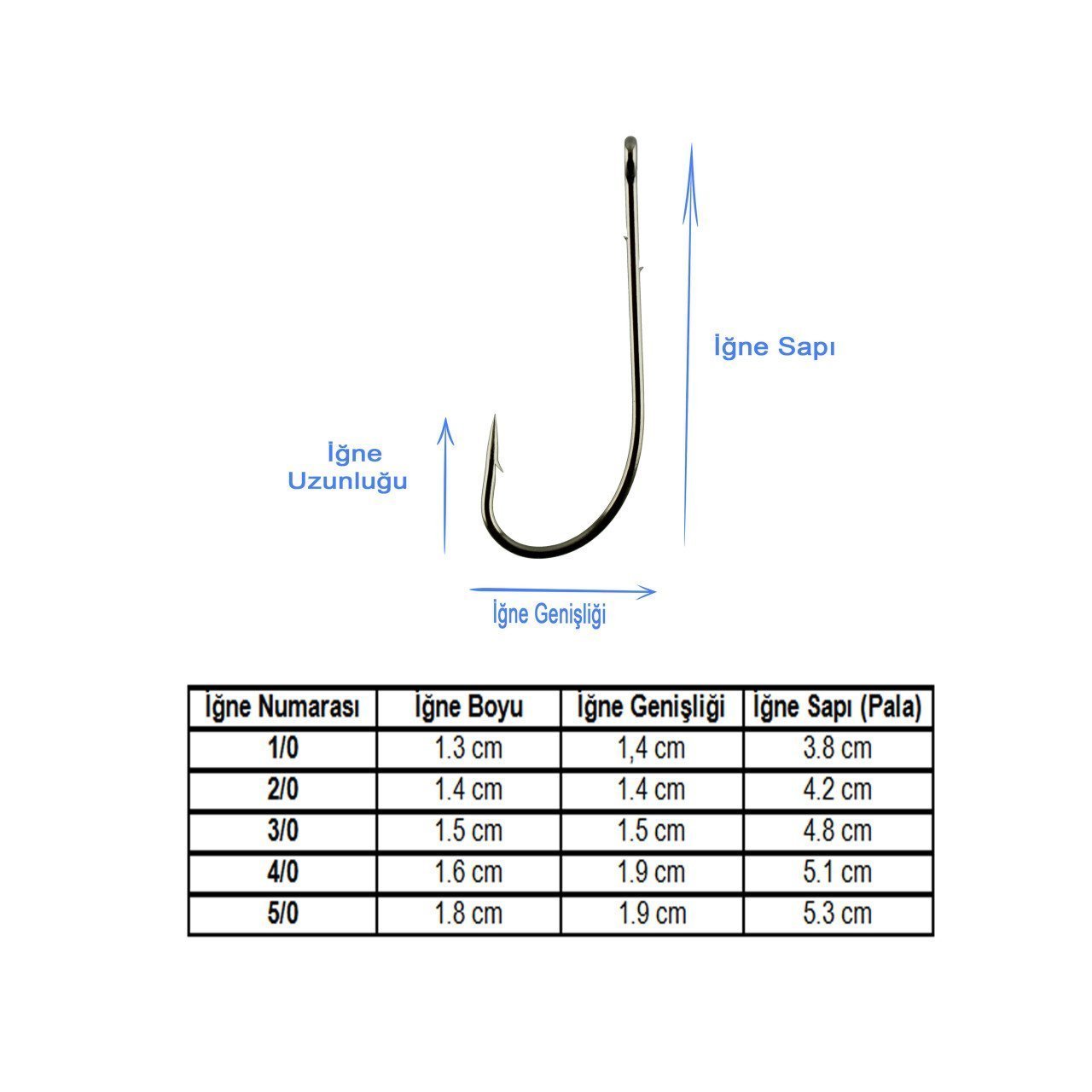 İğne Numarası | İğne Boyu | İğne Genişliği | İğne Sapı (Pala) |